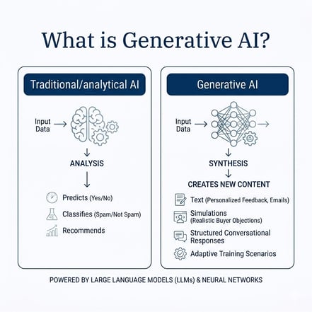 Unlike traditional AI that just analyzes data, generative AI capabilities allow for the creation of realistic simulations and personalized feedback.