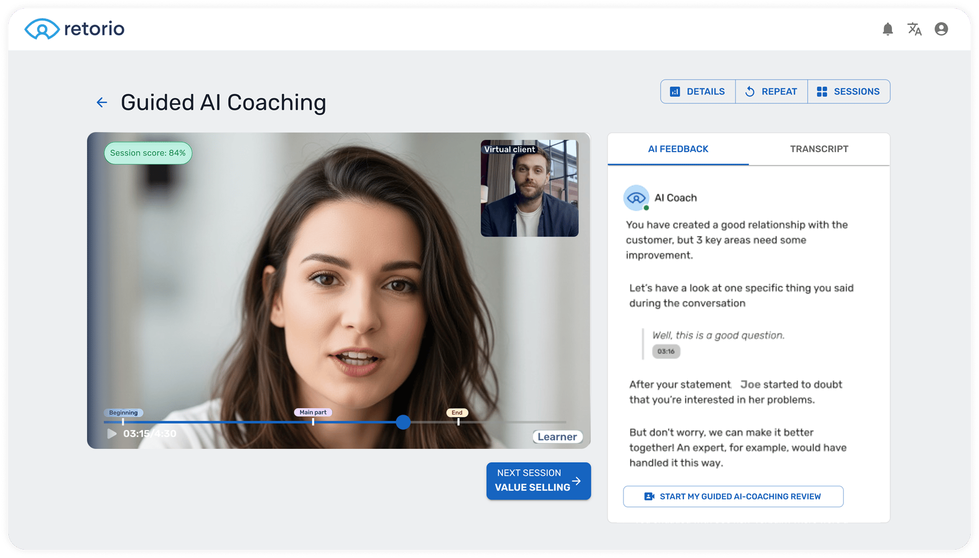 Retorio AI Sales Coaching — Key Features & Learner Benefits
